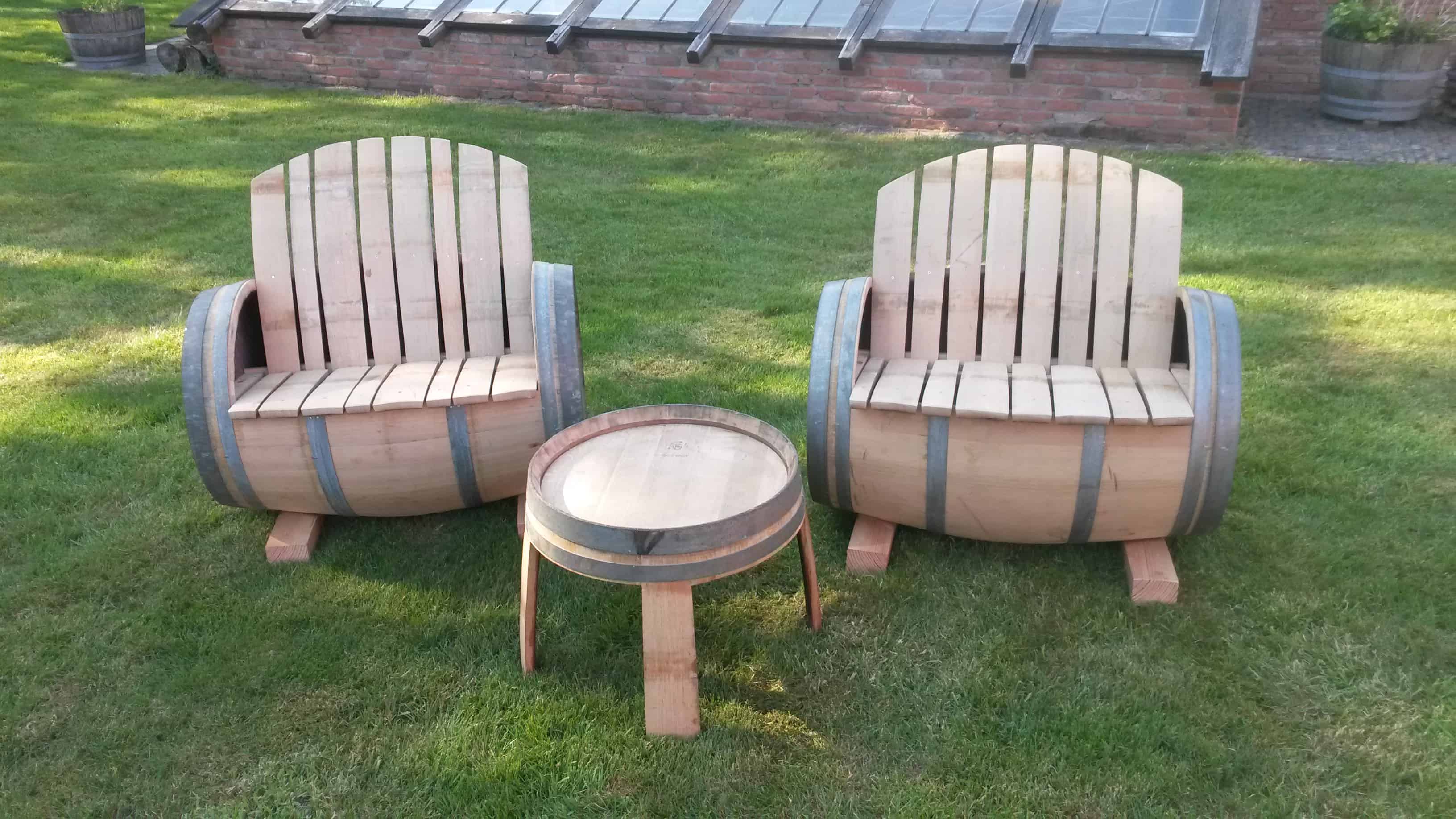 Doorgezaagd ontstaan er prachtige plantenbakken, maar de vaten dienen ook als basis voor houten tuinmeubilair.