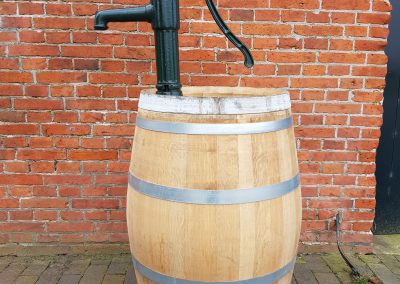 In Meeden, op nog geen 20 auto minuten van Groningen, hebben wij een ruime voorraad eikenhouten wijnvaten staan. Vanuit de monumentale boerderij, gebouwd rond 1879 krijgen de wijnvaten een tweede leven. Het overgrote deel wordt gebruikt als regenton. Met een inhoud van ca 225 liter kunnen tuinplanten tijdens de droge zomerdagen voorzien worden van regenwater.