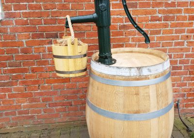 Door een vat door te zagen ontstaan er plantenbakken. Deze kunnen van grootte varieren, waarbij we zoveel mogelijk rekening proberen te houden met de ijzeren ringen rondom het vat.