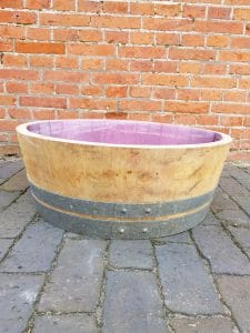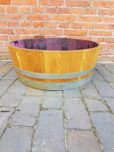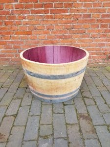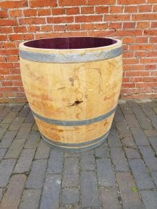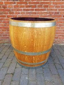 Door een vat door te zagen ontstaan er plantenbakken. Deze kunnen van grootte varieren, waarbij we zoveel mogelijk rekening proberen te houden met de ijzeren ringen rondom het vat.