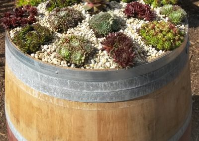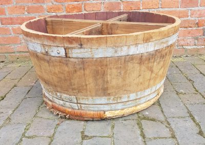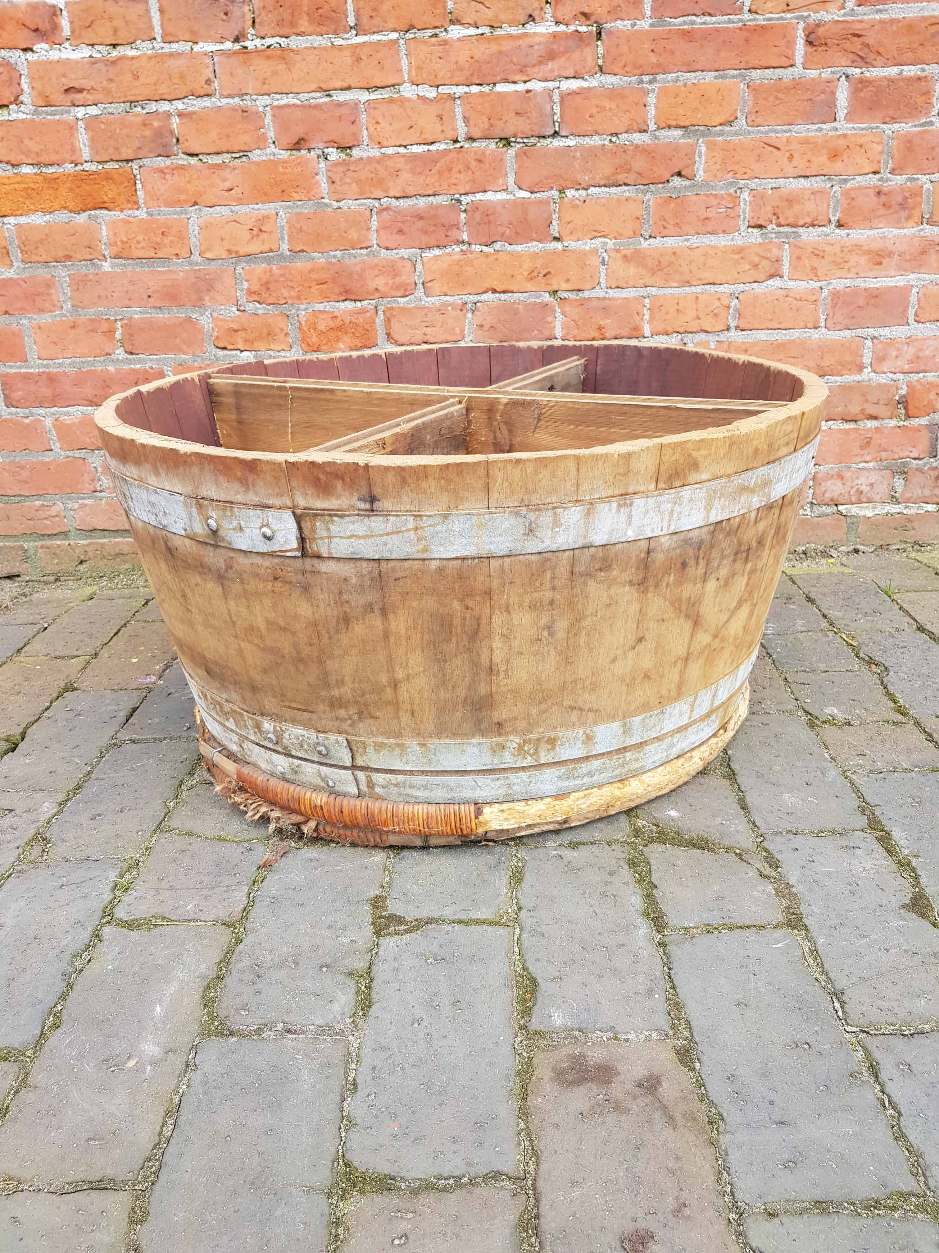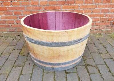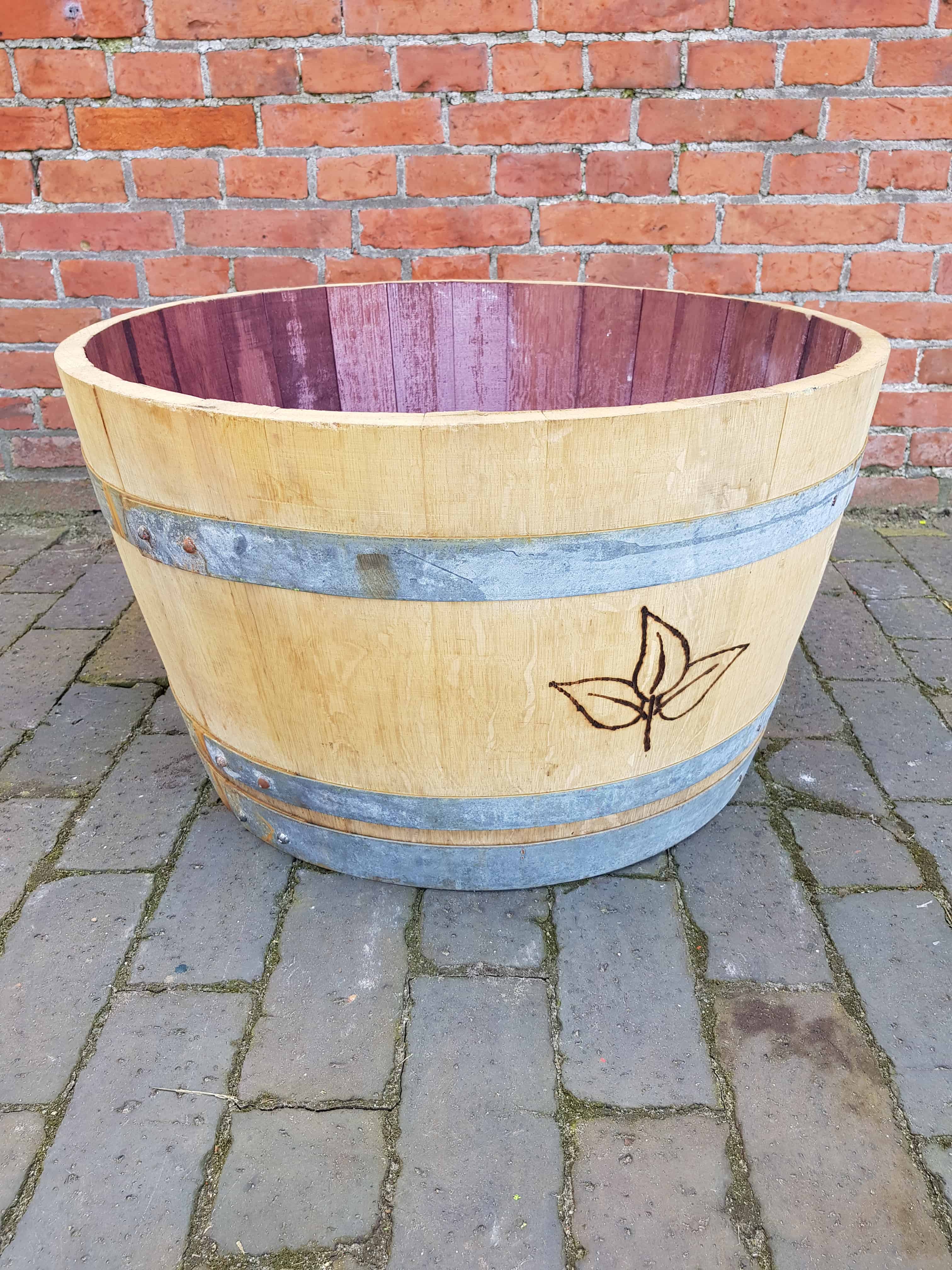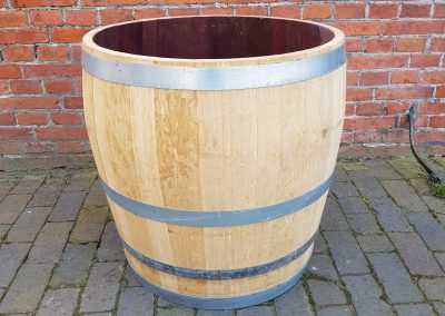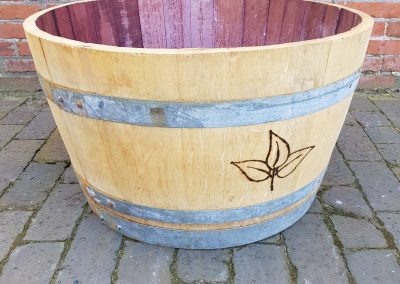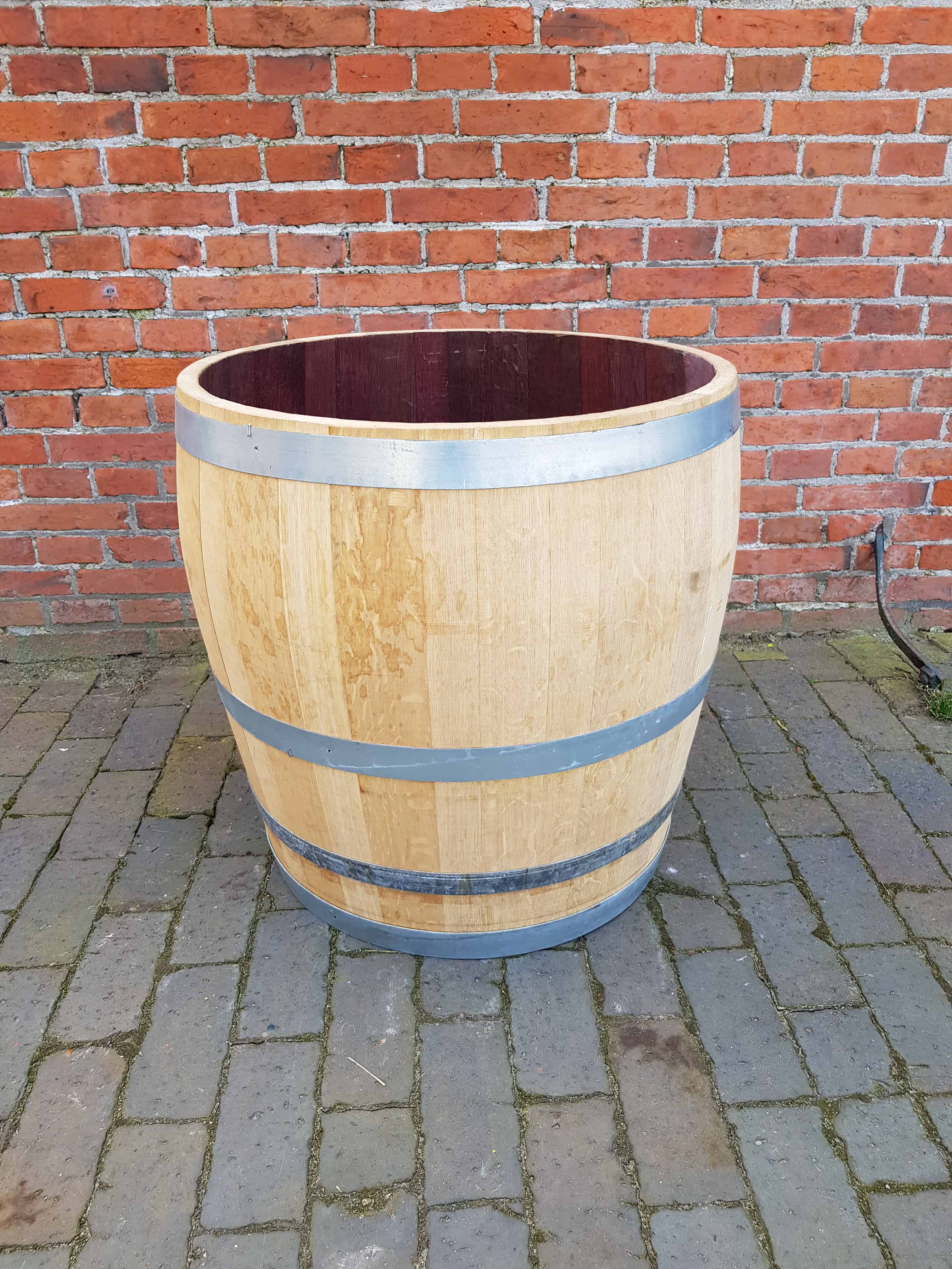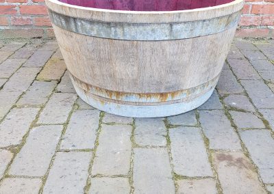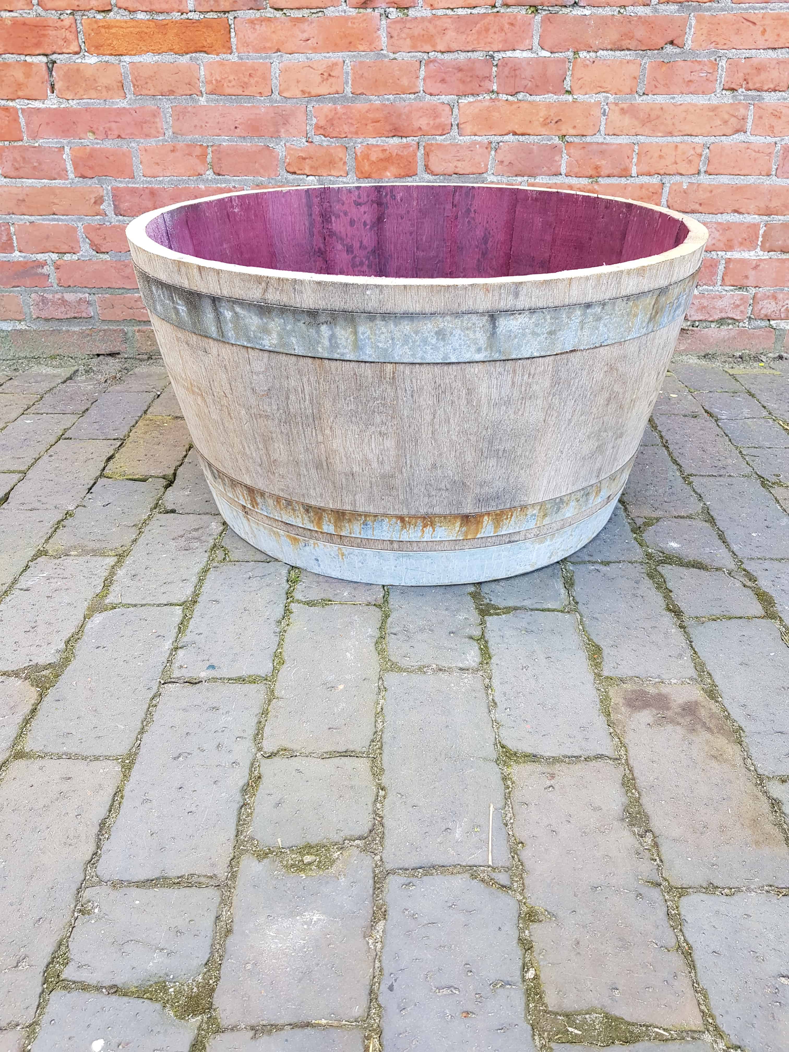Door een vat door te zagen ontstaan er plantenbakken. Deze kunnen van grootte varieren, waarbij we zoveel mogelijk rekening proberen te houden met de ijzeren ringen rondom het vat.